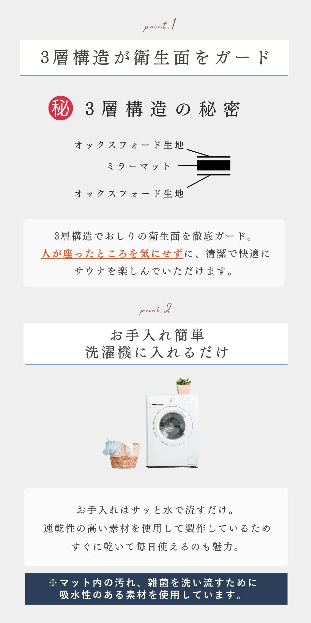 【清潔にサウナを楽しむ】 人が座ったところを気にせずに、清潔で快適にいつものサウナを楽しんでいただけます。